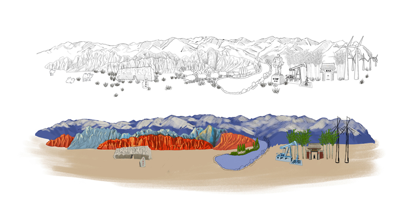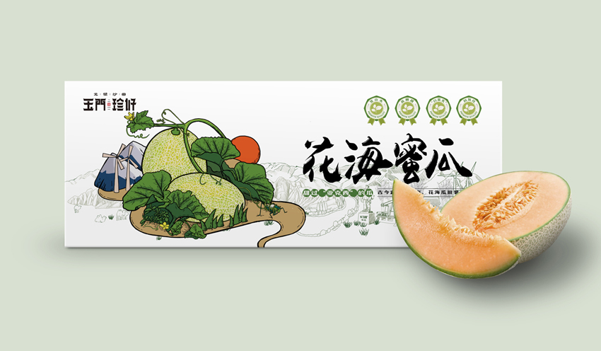 玉門珍好項目從品牌命名到形象終端落地,服務內容: 品牌全案策劃,品牌定位,品牌調性,賣點提煉,品牌命名,超級符號設計,LOGO設計,VI設計,包裝設計,終端形象設計,后期維護等,產品分為:黑枸杞、紅枸杞、胡麻油、韭菜、葵花籽、辣椒、藜麥、蜜瓜、蟠桃、葡萄、羊肉、羊羔肉和人參果13個類別,為了樹立一套有地域性、有產品個性和高度統一性的形象識別,智慧天成團隊受當地政府委托,用時半個月幾乎走遍玉門地標,充分了解掌握當地產業和文化,并提煉玉門最具代表性的人文、建筑、地理環境等元素,純手繪插畫形式把產品和玉門風情完美融合,形成一幅幅有創意的、生動的、美好情懷的迷人畫面。
